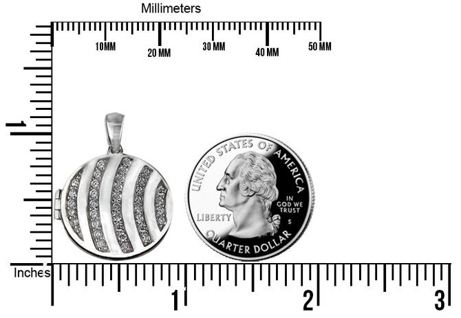 What is on the front of the locket? Hand Engraved w/ Cubic Zirconia