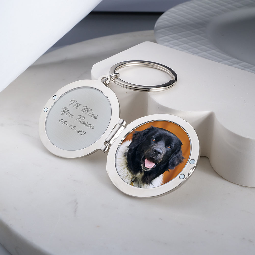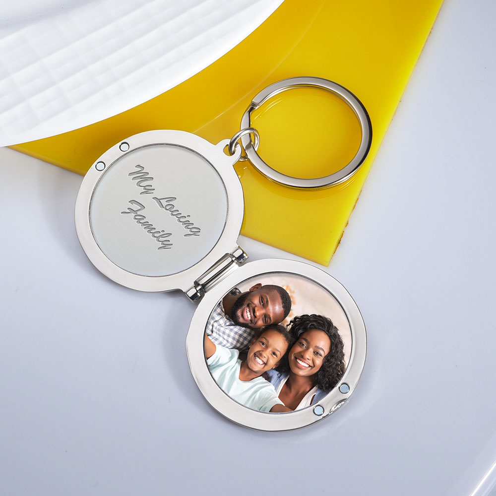 Engrave this Key Chain locket with a picture of your family, your partner, a pet, or anything that