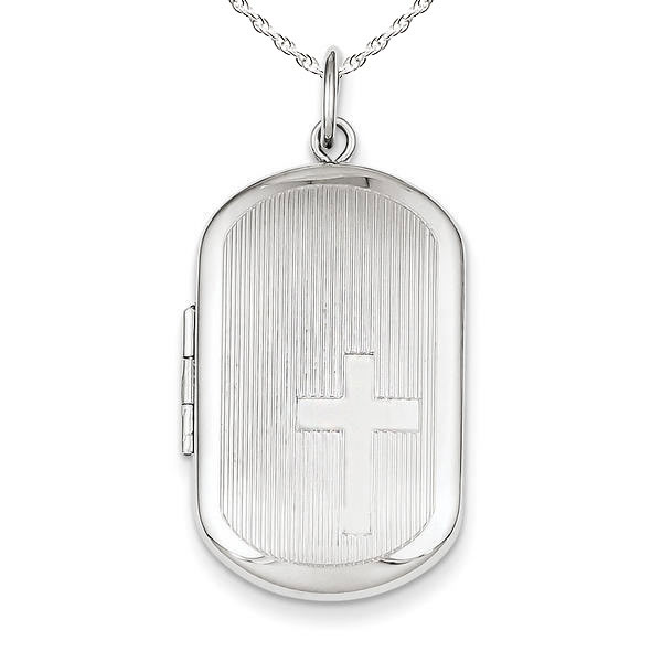 What is on the front of the locket? Cross Design