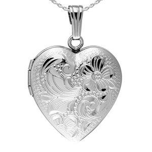 The front of this locket has a hand engraved and diamond cut floral design